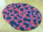 残った紐を三つ編みして、無意味なコースターを~