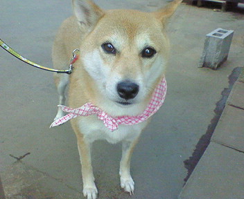 お店の外に、おとなしくつながれておりました。
