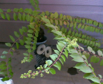 虫のついた葉っぱの焼き物を受け皿にして・・・
