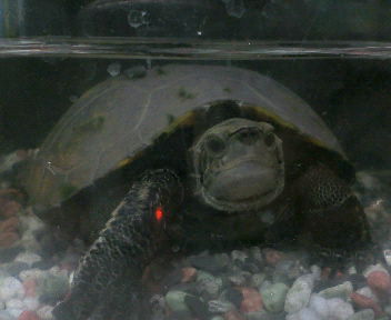 こちらを伺うかのようにゆっくりと水槽の中を移動してきて、