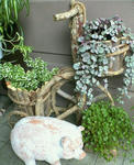 ワイヤープランツ・プミラ・ハートカズラでお出迎えです。