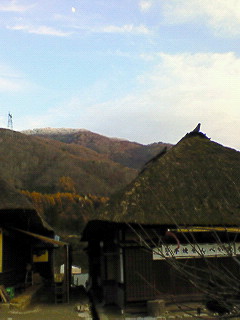 集合時間の頃には、空にはお月様~(雲の上の小さな白いものが・・・)