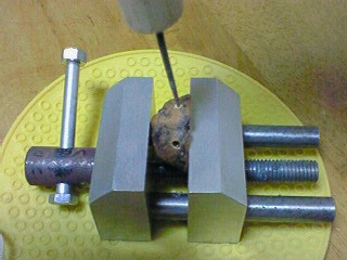 これが又、うまい具合にくるみが固定され、キリでグリグリと~