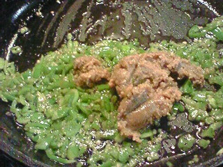 たっぷり残った胡桃味噌に、ちょうどいただいたかぐら南蛮を加え