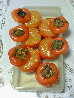 ゼラチンを加え、くり抜いた柿の容器に戻しまして・・・