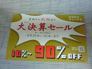 店内の商品、夏物・秋物の決算セールの案内なんですけど・・・