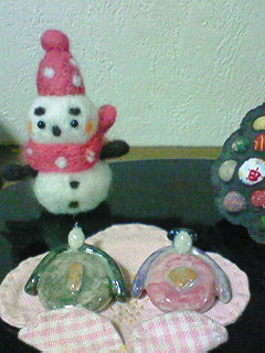 以前、陶芸で作った小さなお雛様を飾りました。