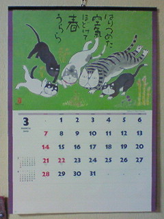 カレンダーのニャンコたちも、土から出てくる土筆をじっと眺めています。