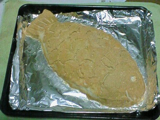 半身にしてそれぞれを塩釜にしたら… しょっぱ~~~い!