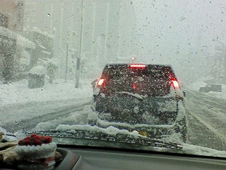雪に押された窓を何とか開けまして