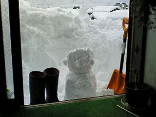 シャベルで切り取っただけの四角い雪だるまです~