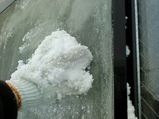 ついでに、雪で網戸を外側からゴシゴシこすって掃除を~