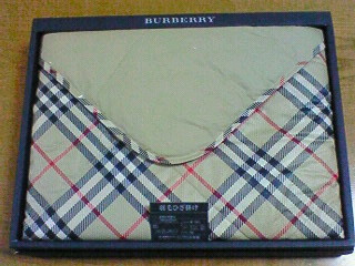 香典返しにと、バーバリーの羽毛のひざ掛けが届きました。