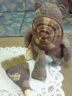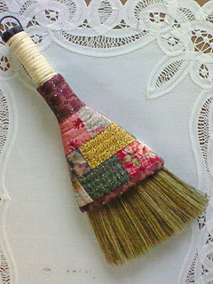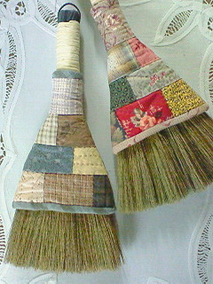 そのはぎれで実家用にと、いまだ使ってくれているバッグとお揃いのほうきを~(左側)