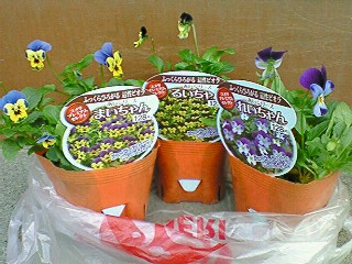 玄関先に飾っておいたビオラとか、ガーデンシクラメンの寄せ植えには