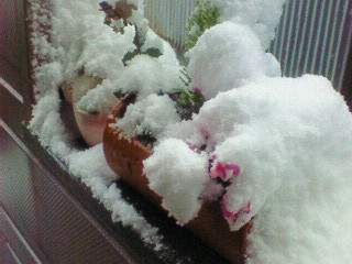 容赦なく、重たい雪が花の上に積もってましたっけ!