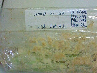 カビを取り除いて、新しい袋に入れ替え冷蔵庫に入れました。