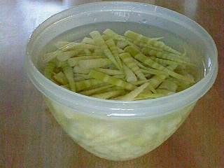 今朝、早くから皮をむき、固い節をとり・・・