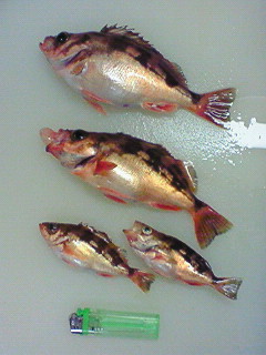右下のチビメバルは 『おいらは、リリースだろうよ!』 って顔してます。