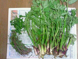 お婆ちゃんが 『畑で青菜採ってきたから、取りに来て~』 と・・・