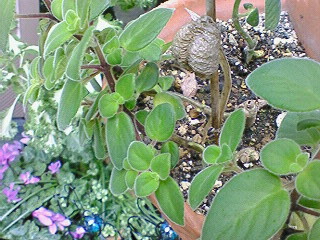 先日の強風で、二階から落下した《花きりん》