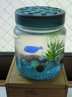 台所の出窓においてあるまりものビンに何やらうごめくものが!