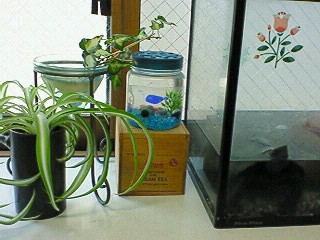 水草に産み付けられていためだかのたまごを入れておいたんです。