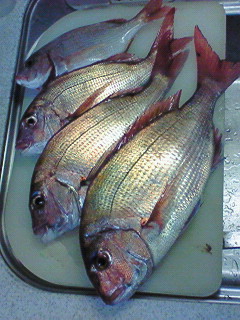 鯛 大小 4匹 と 鯵 2匹 也~