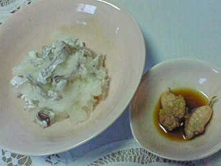 はいだ皮を大根おろしで和えてポン酢で~