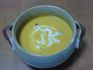 南瓜と玉ねぎをコンソメで煮てミキサーにかけ