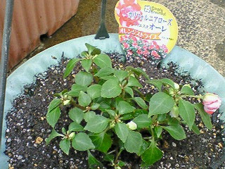 オレンジストライプの 《カリフォルニアローズ》 を買ってきて植えました。
