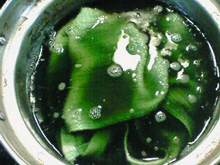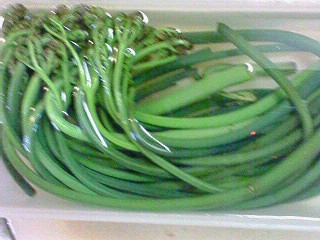 私は、先っぽをカットして茹でて、セッセッ と皮をむき・・・ ふぅ~