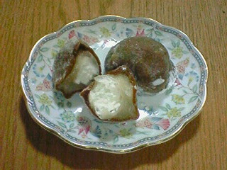 暖かい求肥でくるもうとすると生クリームがブニュッ!
